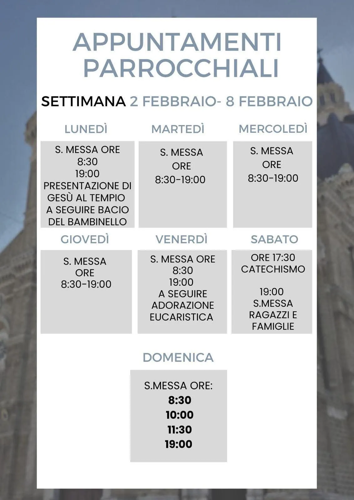 Appuntamenti Parrocchiali · Settimana 2 – 8 febbraio