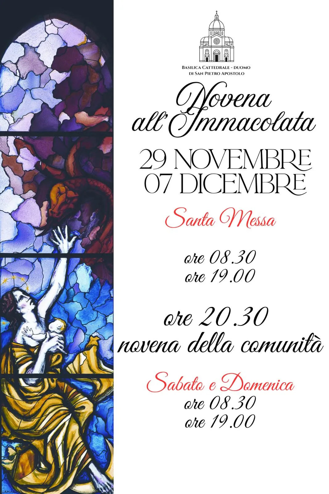 La comunità della Basilica Cattedrale di San Pietro Apostolo si prepara alla Solennità dell’Immacolata con la Novena, celebrata dal 29 novembre al 7 dicembre 2025.